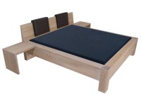 Die Laden werden aus 3 Schicht-Massivholzplatten aus Fichtenholz hergestellt und sind innen natur lackiert. Die Außenseite ist aus dem gleichen Material und genauso lackiert wie das restliche Bett.