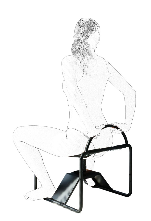 Sexstuhl aus Metall (pulverbeschichtet) mit Gummibändern und abnehmbarem Dildo (Latexdildo L: 14 cm, Dm: 30 mm)